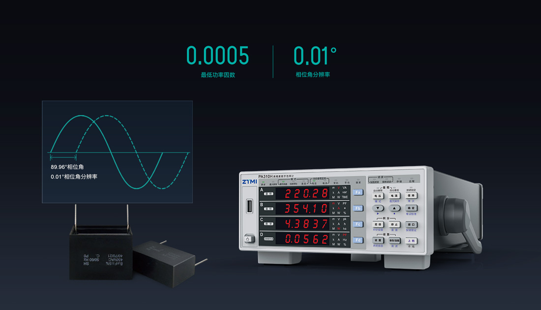 PA300系列數(shù)字功率計(jì)采用100MHz同步時(shí)鐘,相角分辨率高達(dá)0.01°。即使在低至0.0005的功率因數(shù)下仍能保證0.1%的高測(cè)量精度。