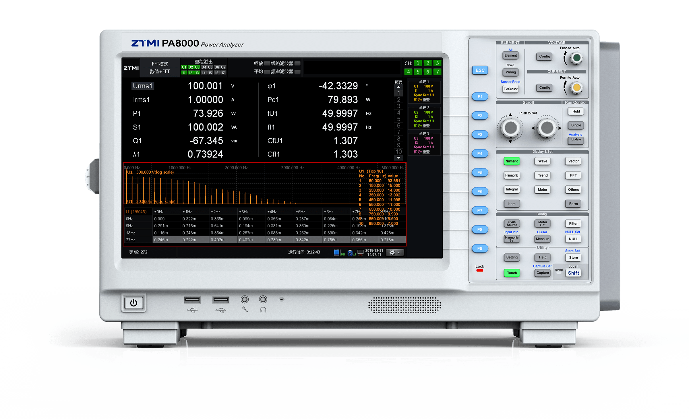 PA8000功率分析儀帶寬為DC/0.1Hz‐5MHz,由于采用了PLL源倍頻技術,可實現速度更快、動態范圍更廣的諧波測量,在諧波模式下可實現對電壓、電流基波、功率、相位、諧波成分和總諧波失真因數(THD)的準確測試。