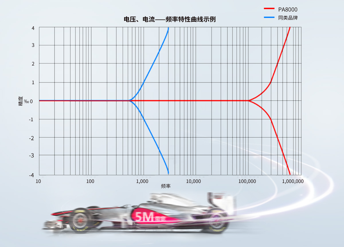 PA8000是行業內為數不多的一款具有0.01%精度,電流與電壓頻率帶寬高達5MHz的功率分析儀,完全滿足未來以SiC為代表的高速開關設備的功率測量。