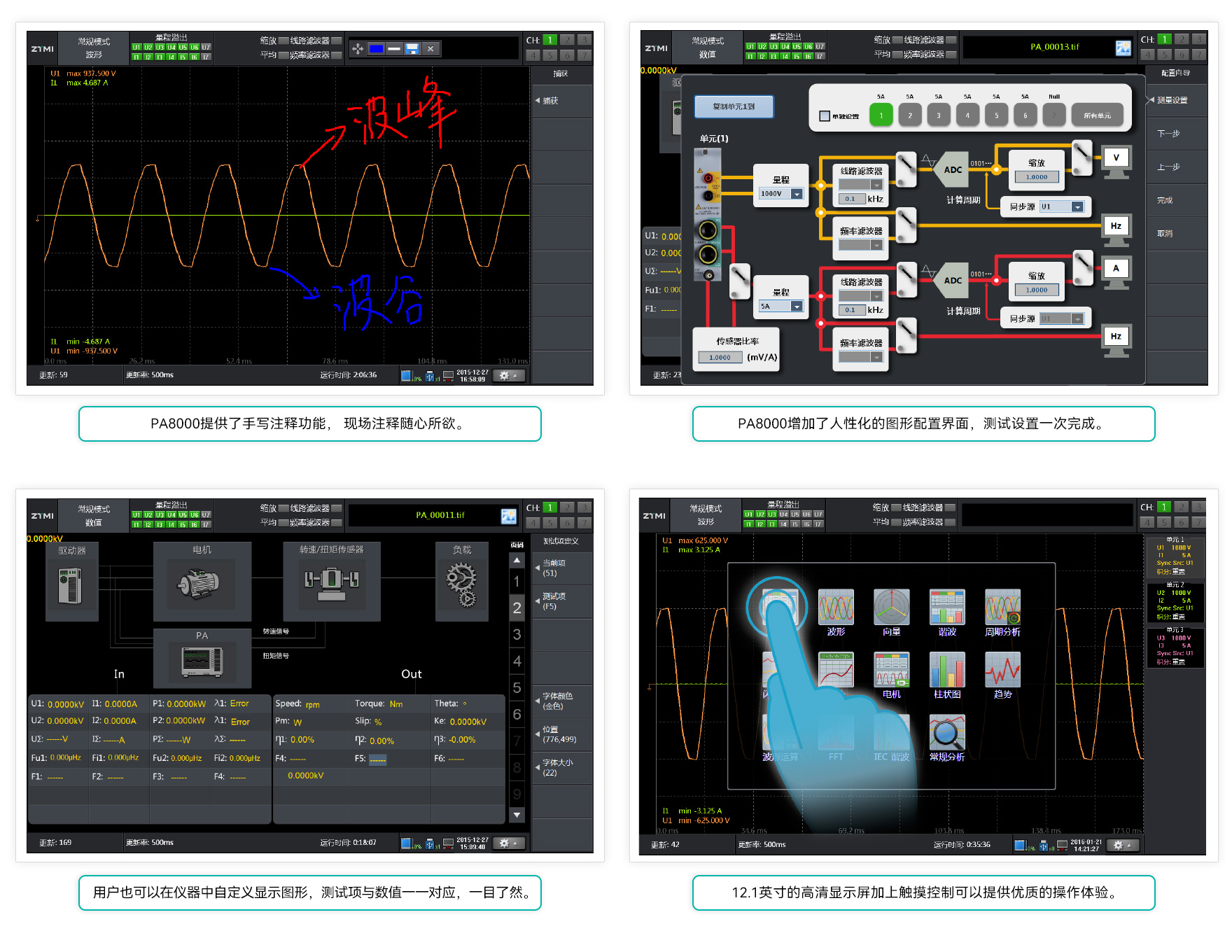 PA8000是世界上少數可以設置1ms高速數據更新率的功率分析儀。我們在PA8000的功能中加入了1ms-5ms的高速數據采集模式,1ms的數據更新率可以捕捉快速變化的瞬時信號,可以展現出波形細節。比如在電機行業中,PA8000則可以完全測量出電機的啟動波形,可以為用戶提供評估電機的重要依據。