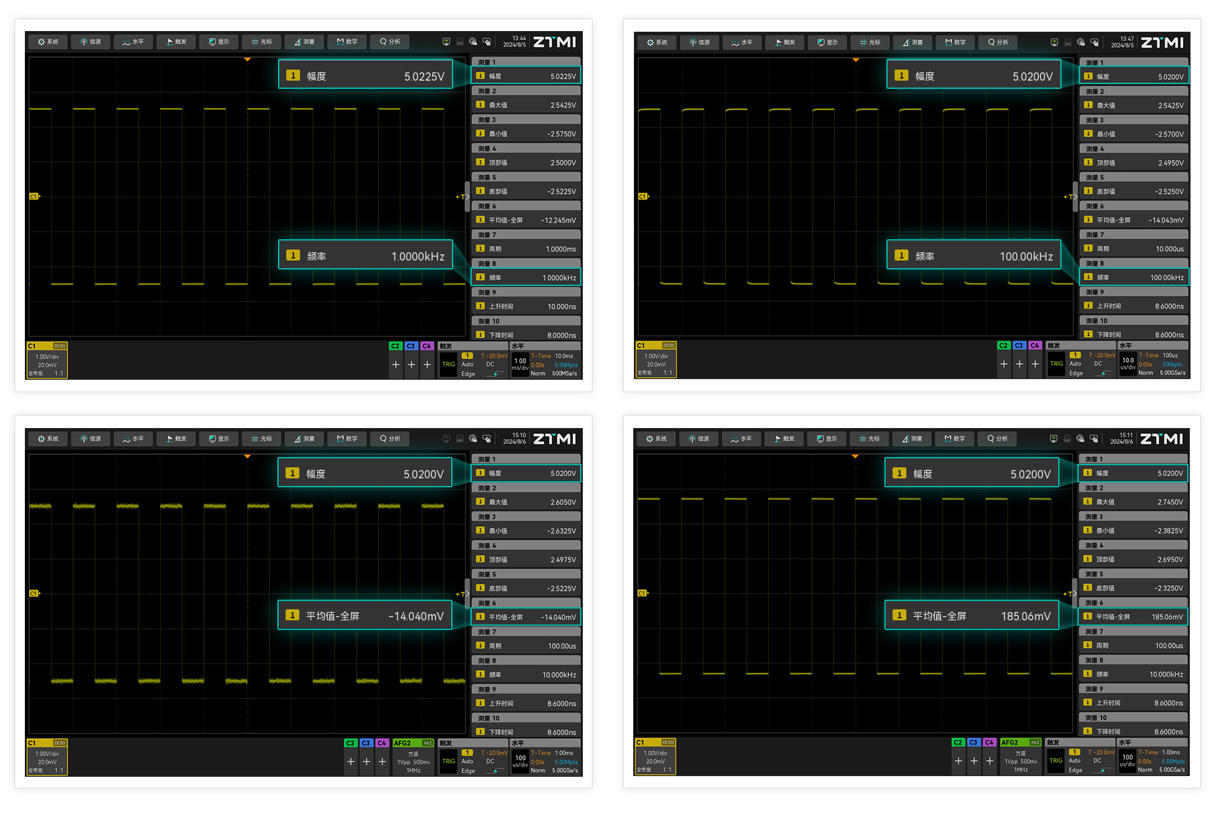 示波器的頻帶衰減曲線在低頻段越平坦,則其測量精度越高。ZUS5000 示波器擁有更平坦的低頻曲線,擁有專利的抗噪算法從而保障在不同頻點、大噪聲、直流偏置等各個工況下測試數(shù)據(jù)的一致性。