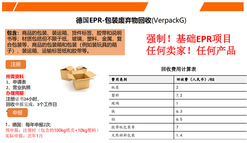 求。故不同歐盟國家注冊EPR號是無法共用的。目前除了德國和法國之外,西班牙、意大利、英國
