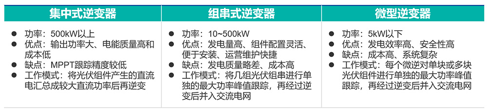 功率排序:集中式逆變器>組串式逆變器>微型逆變器;