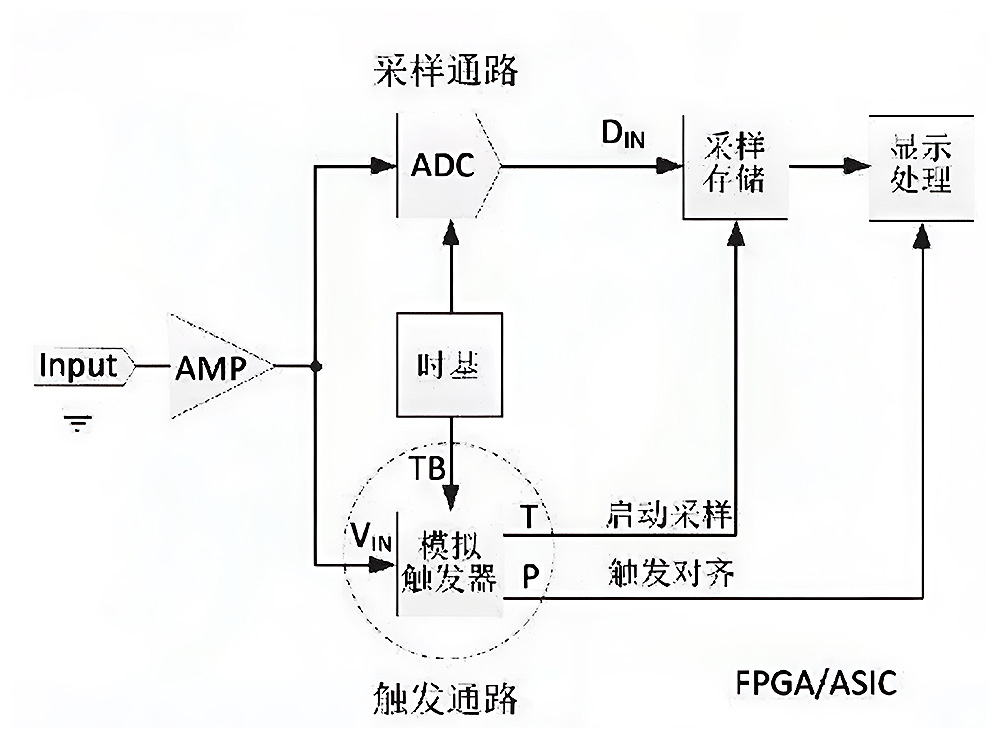 傳統(tǒng)模擬觸發(fā)器依賴純模擬電路,信號(hào)需要分為采樣通路和觸發(fā)通路并行傳輸。這種架構(gòu)存在三個(gè)問題: