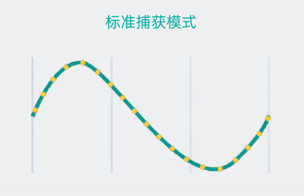標(biāo)準(zhǔn)模式是示波器的默認(rèn)模式,能夠?qū)崟r(shí)記錄并顯示所有波形點(diǎn),反應(yīng)速度比較快。
