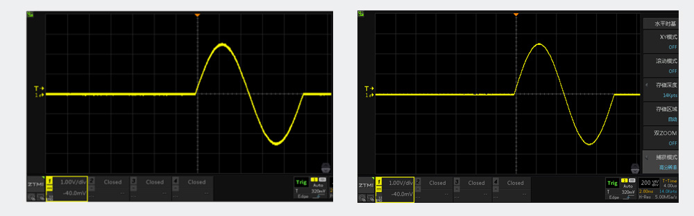ZDS3054E示波器捕獲模式實(shí)測場景對比