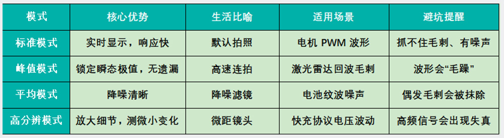 一張表選對示波器捕獲模式,告別盲測焦慮