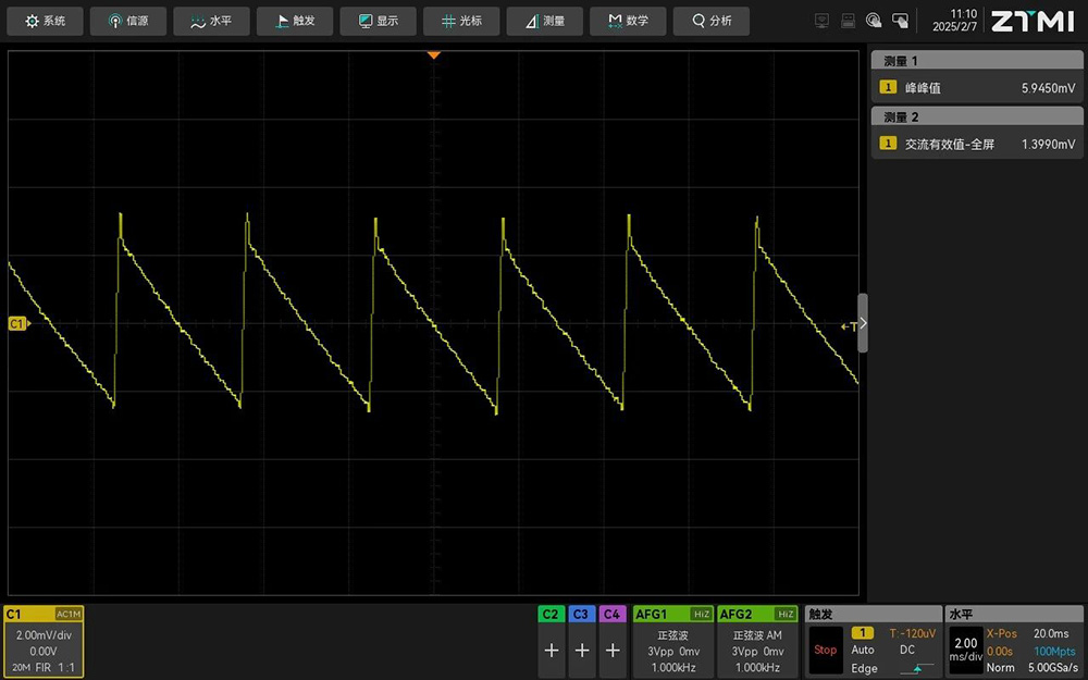 ZUS5054Pro示波器是致遠(yuǎn)儀器公司推出的最新一款的12bit高精度示波器,搭配5GSa/s高采樣率,輕松幫您搞定紋波測試。搭配更高精度的ADC位數(shù),開發(fā)者可以非常方便地測量輸出紋波、1~40次諧波含量、開關(guān)電源的功率等大量的參數(shù),大大提升開發(fā)效率,更準(zhǔn)確測量出您想要的數(shù)據(jù)。