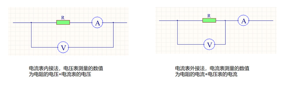 ● 外接法:電流表測(cè)量值 = 負(fù)載電流 + 電壓表分流